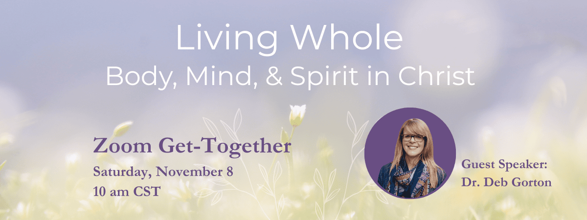 In our November Zoom Get-Together, Dr. Deb Gorton will invite us to nurture our body, mind, and spirit together and create peace, resilience, and hope in Christ. We’ll also discover why integration matters, the truth about anxiety, and the resource our faith is as we live in a world of uncertainty.